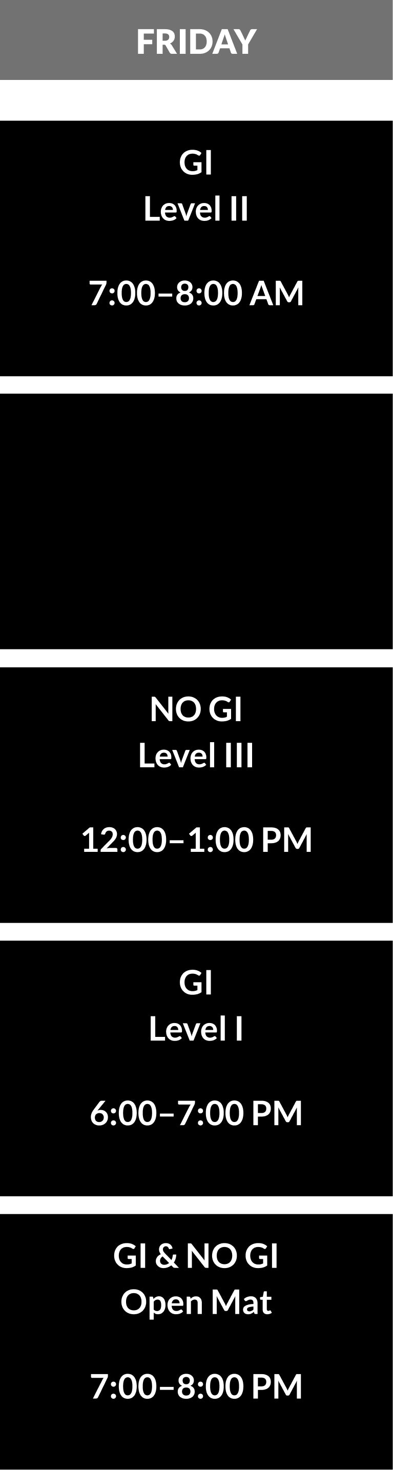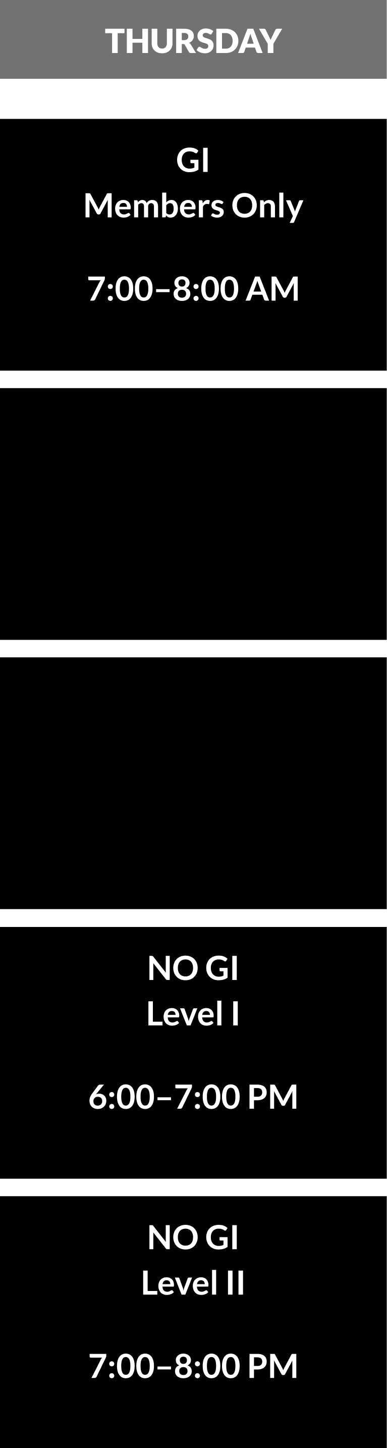 Designed for practitioners seeking a comprehensive understanding of the art in sportive applications. Not just for competitors, this is an all levels class where we dive deeper into the techniques and tactics of Jiu-Jitsu and submission grappling in and out of the Gi. This class covers all aspects of BJJ: standing techniques and takedowns, positional control, and submissions. With a focus on detailed instruction, you'll refine your skills in both offensive and defensive tactics while developing the ability to adapt to various situations on the mat. All classes include dedicated time for sparring starting on the feet.